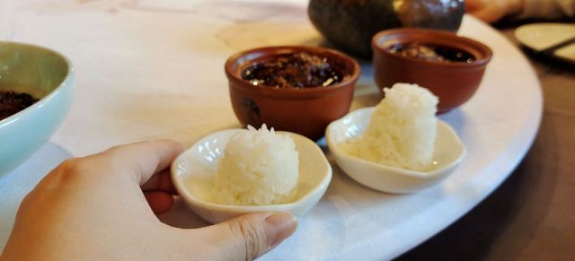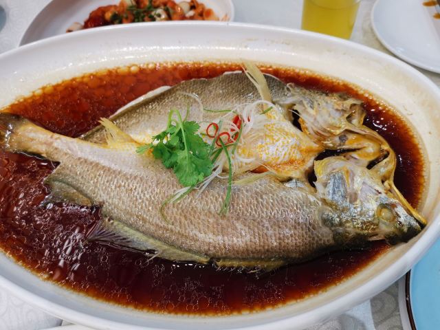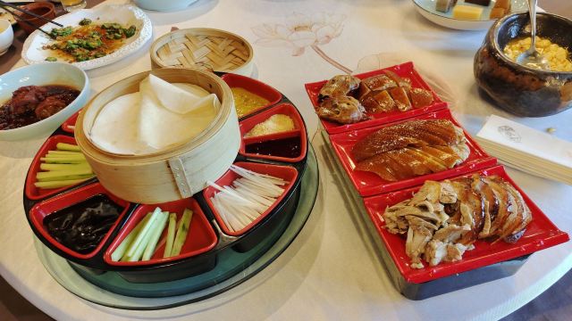 环境不错的一家烤鸭店,中式装修风格,与烤鸭非常的般配。烤鸭的味道值得信任,蘸料酱种类还挺多。除了烤鸭,店里的狮子头也不容错过。