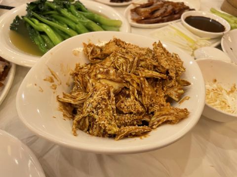 来北京不吃烤鸭,就像没去过长城一样,不知道第几次来到北京了,每次来必吃便宜坊,烤鸭外表油光丰满肥而不腻,鸭肉里面肉质鲜美,再搭配上葱丝和甜面酱真的是绝配,下次来北京还回来吃,比全聚德烤鸭好吃多了!