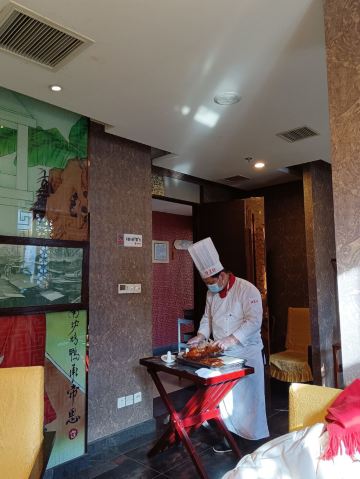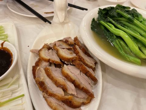前门店,位置高大上,和朋友特地约的这里,排队也很长就是了,店家接受预约,建议有计划的提前订座。便宜坊的特色是焖炉烤鸭,靠炉墙热力烘烤鸭子,据说这样烤出来的鸭子外皮酥脆、内层丰满、肥而不腻,鸭子全程不见明火,切片上桌也是整鸭拿到堂上当众片切,薄厚均匀、摆放整齐。
