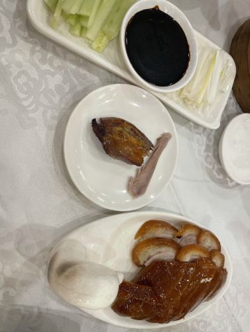 虽然北京人不常来前门,但是如果在前门办事的话,在这里吃饭还是不错的选择。团购的双人餐,根本吃不了。两个菜加两碗米饭都打包了。推荐一下。半份烤鸭加上3个热菜1个凉菜2个北京点心。