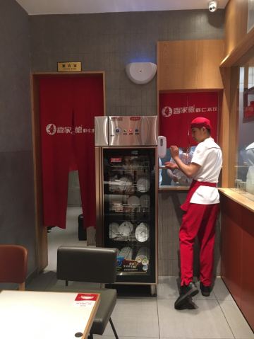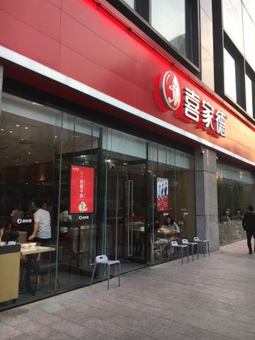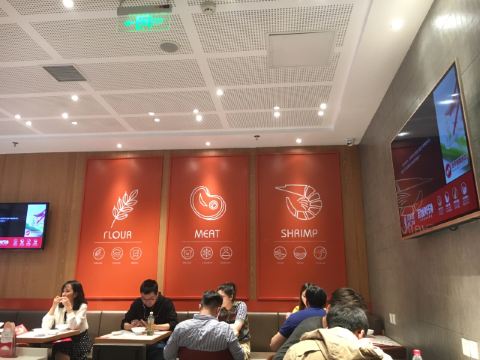 Xijiadexiaren Dumpling House (xinzhongguan)这家水饺店主打虾味水饺,饺子比较长,好入口,虾三鲜的每个里面有一个虾仁,配上韭菜鸡蛋,味道很香,虾也很Q,喜三鲜是肉馅的,猪肉、木耳,还有一种没吃出来是什么,相对油要大一点,松仁土豆丝,凉拌粉,口感比较脆,里面有几颗松仁和黑芝麻,草莓酸奶比较稀,不过感觉像草莓榨的,奶味不浓,服务上,店员热情主动,习惯不同,不过落座以后,都会主动先倒上一碗热乎乎的饺子汤,调料是自己到中间的台子上自取,有醋、酱油、蒜、辣椒,还有饭后清口的糖,筷子会放在一张纸餐垫上,相对比较卫生,环境总体还行,店面不是很大,这个季节吃饺子还是有点热,桌椅摆放比较紧凑,中间可以看到师傅们在包饺子和煮饺子的过程,由于是现点现煮,所以上餐速度不会很快,一盘有12个饺子,个头看起来还算大,下单是扫桌面上的二维码,然后直接付款下单,服务员会把打印的小票送过来,然后等着上餐就好了,餐后服务员开会主动过来询问要不要加饺子汤,只不过没有什么优惠活动