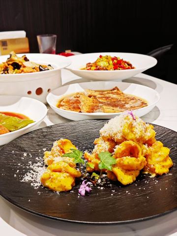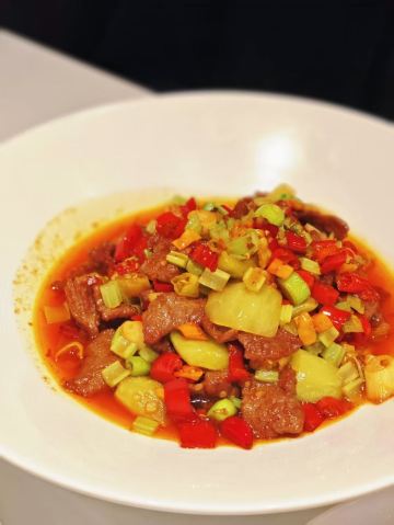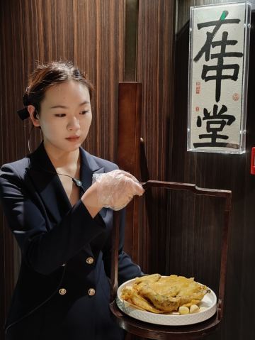 狐狸格格喵晋韵雅宴的沉浸式沉浸式体验 步入大门,青砖灰瓦与木质雕花勾勒出三晋大地的建筑风骨。高挂的大红灯笼提醒我,瞬间将人带入晋商大院,但旁边高耸的大楼又提醒我,这里是北京,这里是建国门是永安里,极致的反差感和视觉冲击。特别喜欢餐厅里的装饰,尤其是青砖墙面和门口雕花箱柜,和我在乔家大院看见的一模一样。 下面三层是餐厅,既有大厅散座,又有很多的包间,家庭聚餐和商务宴请都适合。二楼的宴会厅面积很大,做个团建场地也是极好的。我要和公司建议一下。楼上是住宿,吃住一体,太方便了。 过油肉必点: 山西菜最有名的就是过油肉了吧,色泽油亮,肉质鲜嫩,香味四溢,非常正宗。 小炒黄牛肉: 牛肉用的是平遥牛肉,味道太地道了,我用来拌饭,恨不得再来两碗。 法芥坚果明虾球: 用料也太赞了,虾球用的是特别大的虾,一口一只,全是满足。 这家隐匿于京城胡同的山西餐厅,实在是太低调了,请多多宣传,多多开店,最好在我家门口开一家,我一定保证天天去吃。