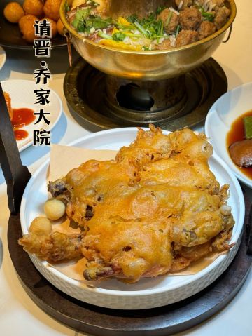 滇金丝猴🐒每次请客户吃饭都来这里,成功签下人生大单! 在北京想吃上一口正宗山西菜,首推必然是乔家大院!建筑古香古色,环境令人惊艳,很有底蕴充满历史感。服务周到细致,无论是商务宴请还是朋友聚会,选这儿都错不了 🥘🥘天下大同什锦火锅 秋冬进补怎么少得了这一锅。。。。 墙裂推荐哇!搭配高汤味道鲜美,选用多种新鲜食材。天气逐渐转凉,喝上几口立马全身暖起来。人多最适合点上一锅围坐着边煮边聊。如今正值双十一大院火锅节🎉吃1⃣️锅送1⃣️锅✌️ 🥩🥩老太原过油肉 过油肉超级香,🥩肉片又大又嫩,吃起来很过瘾,绝对的下饭神器!这道🉑是山西非遗哦😎 🍗🍗凤出晋阳香酥鸡 哇塞是一整只鸡端上来的耶,面糊金黄香酥,吃起来皮脆肉嫩没得说~还配了几只Q弹的🥚炸鹌鹑蛋 🐟🐟乔府小黄鱼 🈶清蒸和糖醋两种选择,喜欢酸甜口的推荐糖醋,造型更惊艳。外酥里嫩鱼肉够鲜。 💐请晋·乔家大院(建外大街店) 🏠朝阳区建华南路11号 #北京探店#宝藏餐厅分享#北京美食攻略#我的美食日记#美食分享#美食日常#周末去哪儿#我是吃货#今天吃什么