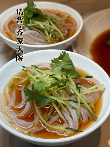Angellsong品味历史,享受生活 晋·乔家大院,一座藏于现代都市中的古风雅舍。不出京就可以来一次时间与文化的旅行。平遥古城,晋祠,青石板路,木制窗棂,每一砖每一瓦都承载着岁月的故事,让人仿佛置身于那个充满传奇色彩的时代。 这里有山西美食文化的传承与创新。 汾酒羊杂的香辣,唤醒舌尖上的激情;老太原过油肉的酥脆,让人回味无穷∞ 乔府桃仁宫保鸡丁 鸡肉滑嫩,桃仁香脆,麻辣中带丝丝甜意,一菜尽显宫廷风范。 面食爱好者的福音~剔尖面与刀削面,四种美味可口酱汁更是将山西面食的精髓展现得淋漓尽致。面条劲道爽滑,入口鲜香。 环境更是令人流连忘返。古朴的装饰,精致的餐具,每一处细节都透露出乔家大院独有的气质。 16间豪华包间,非常适合商务宴请👍 也有中小包间适合与家人共度温馨时光,朋友小聚分享快乐瞬间,服务热情周到细致。 @请晋·乔家大院餐饮酒店