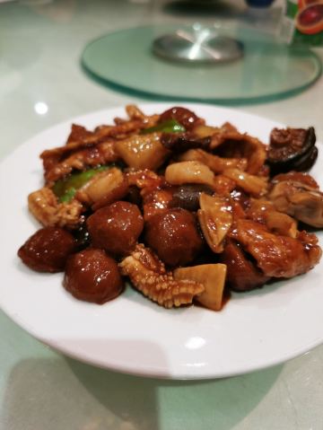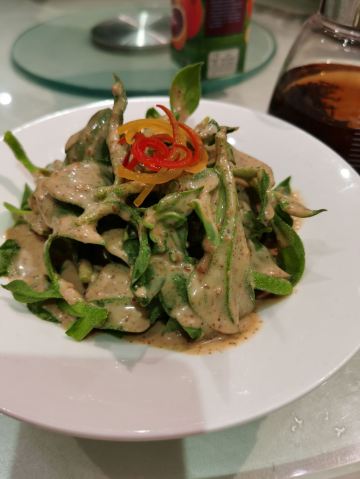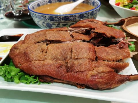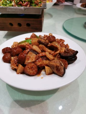 晋阳饭庄在居民区里不太好停车,周围邻居家庭聚餐比较多。晚上很早就打烊了,想吃的早点来。点的都是招牌菜,沙拉不错食材很新鲜,香酥鸭、过油肉、盘龙肉饼还是比较油腻的最后海鲜酸辣汤很爽口。 停车位很紧张,是老小区,以前小区停车不收费,现在开始收费,4元/小时。