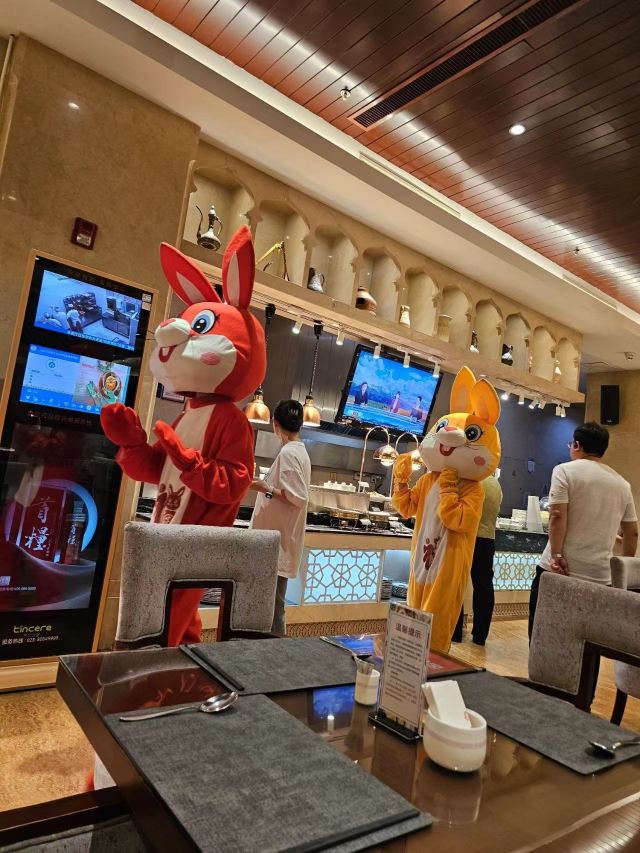 自助餐的羊肉串和烤全羊都非常好吃,尤其是刚出炉的羊排,肉质鲜嫩,令人回味无穷。