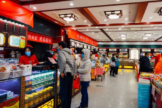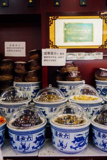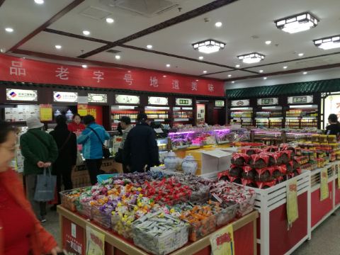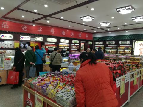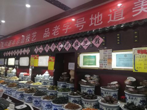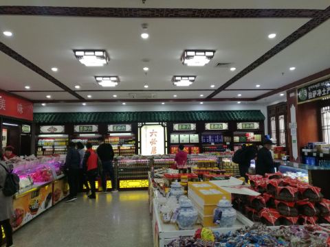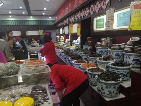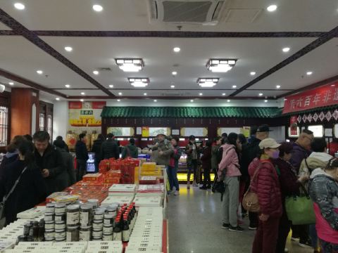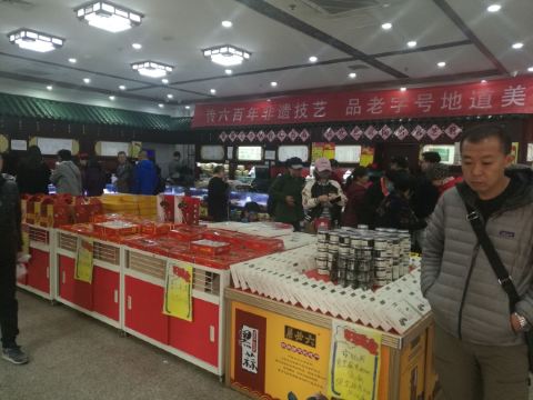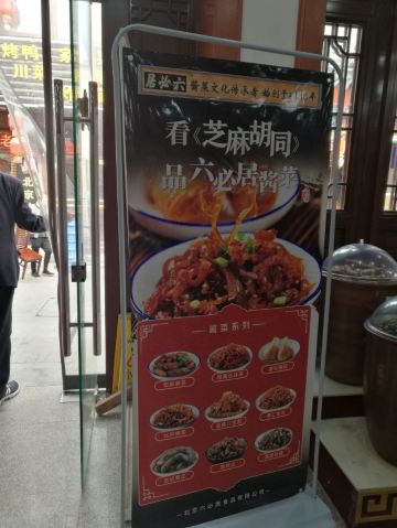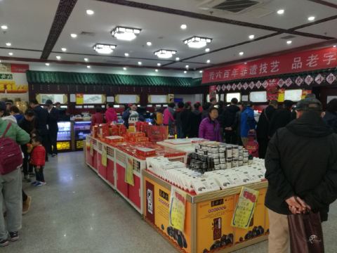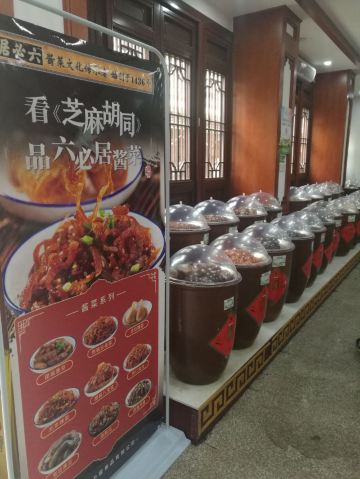 六必居•金鼎轩地理位置优越,门庭若市。一进门就被一股浓浓的酱香味吸引,放眼望去琳琅满目的酱菜、酱料整齐摆放,从酱黄瓜、八宝菜,再到糖蒜、芝麻酱等都深受食客亲睐。这里的四楼还开设了酱菜博物馆,有时间可以去参观一下。
