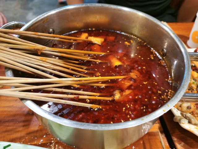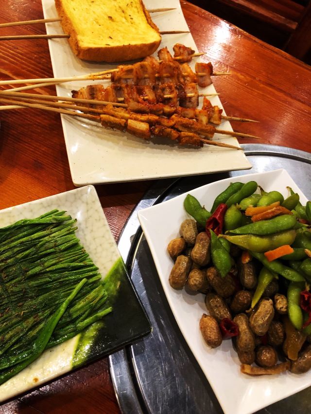 烧烤撸串之地,近清秀巷,价格亲民,二楼是露天的阳台,就餐比较有感觉。烤鸡翅表皮酥脆,鸡肉软嫩多汁,个头均匀,只有一串稍微有点小儿麻痹,评选出最好吃的是芥末味。推荐烤鸡翅、烤金针菇、烤面包片。