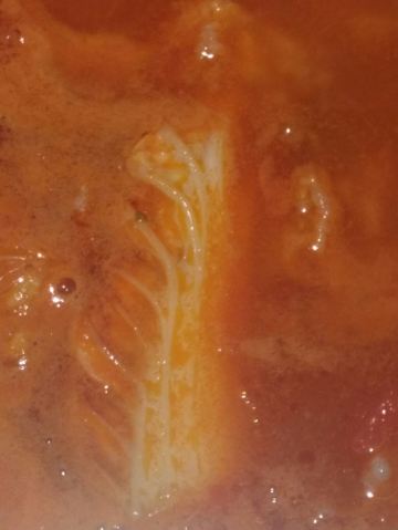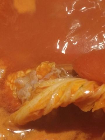 锅底点的是一边麻辣的,一边菌汤不辣的。菌汤的那边可以喝汤,加点香菜和小香葱在汤里,味道非常不错。黄喉的品质非常不错,煮在锅里很长时间也不会老,咬起来还是脆脆嫩嫩的。