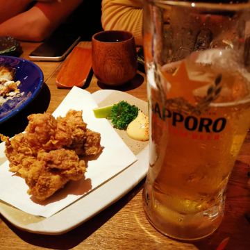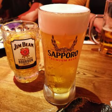 NONBEI KIN IZAKAYA🍻酒鬼金居酒屋,北京一共三家店,我去的是学清路科技财富中心一层这家店。居酒屋是要去喝酒放松听笑话讲故事的地方,吃的好那就是加分项,酒一定要入口顺滑,酒杯必须漂亮(我是杯子控)日式风格环境让你置身于日剧中。 我们把朝日、麒麟轮着喝了一遍,黑啤是听装的,我们两个菇凉分着喝的。🍻🥂🍷🥃🍸🍹🍾🍶🍵看电视广告越看越馋,鱿鱼和炸鸡块都是后加的下酒菜,烤三文鱼头很鲜美。