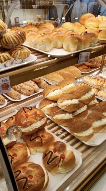 奶油牛角,炸豆馅面包,咖喱香肠包,巧克力牛角,丹麦红豆面包,裸麦面包,咖啡蛋糕卷,枣泥儿包,全麦黑芝麻,山楂包,抹茶全麦面包,南瓜全麦面包,咖啡奶油蛋糕,树根蛋糕,葡萄干面包,原味奶酪,果酱排,巧克力奶油卷,拿破仑