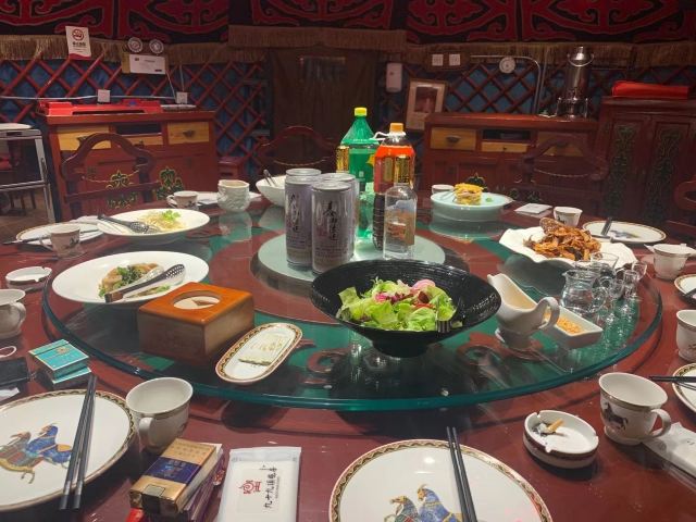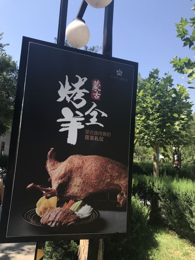 JiuShiJiu Ding ZhanFang有不少蒙古包餐厅,餐厅就餐环境舒适,蒙族装饰浓郁。烤全羊是这里的拿手招牌菜,一般要多人聚会或家庭聚会点这道菜,加工比较费时,但味道香醇,肉质细嫩,回味浓郁。不吃烤全羊,烤羊腿也是必吃的。另外这里的羊肉串做得味道很地道,值得品尝。这里的酸奶味道独特,对消化很有帮助。