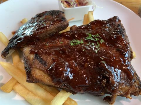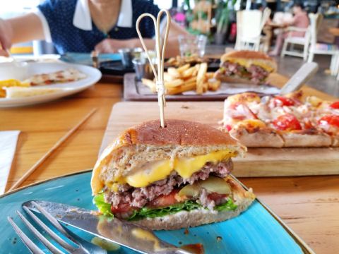 Bjqiqiwendy来这附近比较偶然,但是这家餐厅我实际上已经收录好久了,只不过比较遗憾错过了它的荷花盛开期。院内停车非常方便,吃完饭有3小时免费停车券可以领取。 【特色汉堡】上镜率很高的一道菜品,可以整个入口,也可以要求餐厅一分为二,针对于肉饼几成熟也可以提要求。汉堡属于在国外吃的那种比较西式的口味,薯条的口感也非常棒,很推荐;这是一道美式菜肴。 【肉食者天堂披萨】一定要趁热吃,可以体会到cheese的美味,它家的pizza都是长条形的,切片也是长条形的,便于入口。这是一道意式菜肴。 【鸡肉沙爹串】当时餐厅内做活动,appetizer买一送一,但不是同款买赠,是选择价格高的,赠送一款价格低的菜品。这个鸡肉串算是赠品,但是味道很不错,真的是货真价实的大块鸡肉,这是一道东南亚菜肴。 【墨西哥鸡肉脆饼配玉米片番茄莎莎】这也属于appetizer的范畴,不得不说主食点多了,最后不得不把pizza打包带回去。鸡肉脆饼中间都是有馅料的,两旁的没有,可以配上番茄莎莎食用。典型的墨西哥风味菜肴。 【柠檬冰茶】颜值不错,下面最好喝,维C很丰富,上面就是茶的味道了,中规中矩。 如此一来,吃了集合多国口味在一起的一顿餐,整体而言,配上就餐环境,我认为性价比还算是比较不错的餐厅,有机会尝试一下它家下午茶。