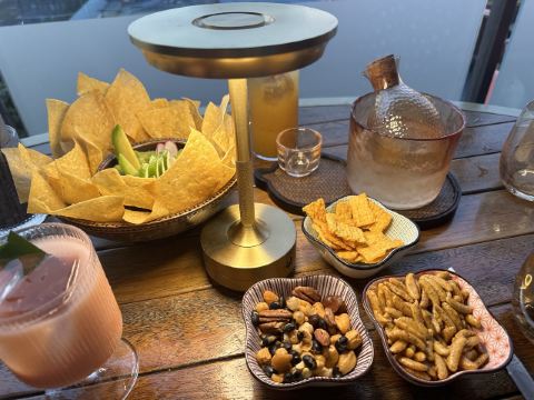 【环境】 北京王府半岛酒店的云吧是一个的季节性的露台酒吧,夏天才有,英文就叫Yun Summer Lounge,差不多今年9月底就收摊,团队和酒店室内的一个酒吧是一个。如果碰上下雨,云吧会视情况暂停营业或者是转到室内酒吧的备选场地。我来的这天,正好坐在了屋檐下的位置,来的时候后来下起了雨,完全没有淋到,还感觉特好。 【服务】 半岛的服务不用多讲,棒! 【口味】 我团购了两杯鸡尾酒+牛油果薯片的套餐,点了莓屿特饮和柚子茶,都还不错。