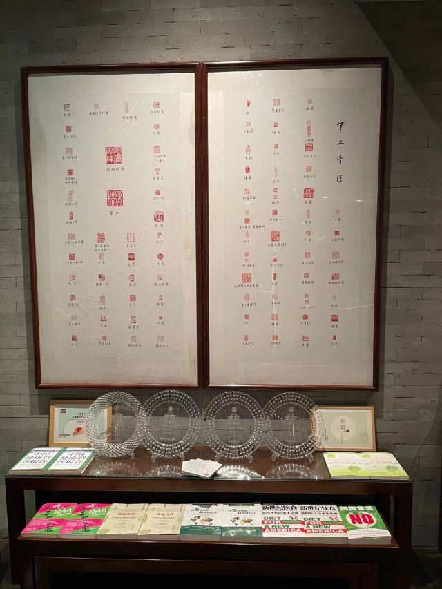 King's Joy京兆尹,北京首屈一指的素菜餐厅,减肥也不能亏待自己,隐藏在雍和宫的一家素菜馆,地理位置非常好找,就在雍和宫地铁站对面,餐厅有专用停车位但是不多,需要提前电话预定,预定后会有预订部联系你,可以向他提出车位,包间,摆盘等等一系列的要求,当时订的包间需要提前交押金1000,因为都和预订部联系好,到了餐厅车位,包间都很顺利,一进大门就是仙境一般云雾缭绕,处处都是拍照景点,大厅还有弹琴表演,环境非常安静,每一处都透漏着优雅,每一道菜品都是素食,但是确能吃出肉的感觉,每一道都是精品,服务态度很好,进屋敲门,没有同意是不会进包间,每一间包间都有固定服务员,餐厅有零点有套餐,毕竟质量在那价格也不会太低,价格虽高但不枉此行