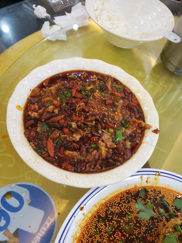 豆花,荤燃面,血皮菜炒猪肝,爽口腰片,蒜泥白肉,芋儿鸡,正宗重庆疯狂辣子鸡,水煮鱼,干锅肥肠,江边盆盆鱼,回锅肉,夫妻肺片,燃面,烧椒皮蛋,仔姜大虾