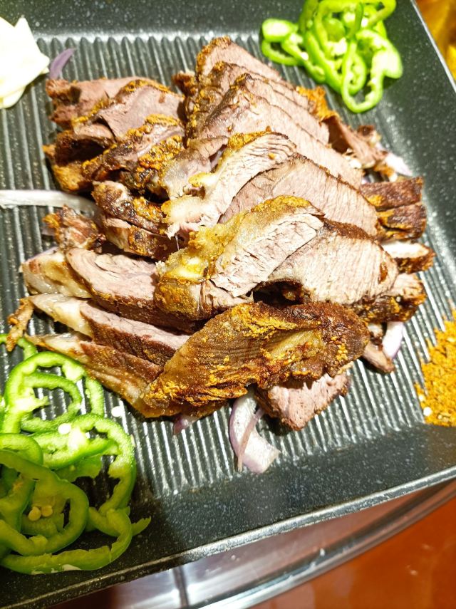 都是硬菜啊!精品烤鸭皮酥肉嫩,烤羊腿没有膻味,鱼头泡饼量大肉足饼层多且酥脆。上菜速度很快,提前一个月定的套餐,真的很好。祝附近吃饭首选这里,适合推轮椅的老人来就餐哦。