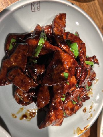 YoYo_3I7F0H6Q本来不在计划中的店。只是因为恰好在这附近又特别饿就决定来试一试了。 以为会踩雷,却意外的好吃。 工作日晚上8点多去的,还排队排了15分钟左右。不过服务员态度蛮好,手机没电了收银还帮我充了电。 两个人点的每一样菜都很满意。 【小吊梨汤】真的好喝,北京太干了,梨汤解渴润肺,淡淡的甜,也不粘嗓子。一壶两个人根本喝不完,最后打包了,可以选择花2元钱买个玻璃瓶打包,也可以不花钱用纸杯装。 【干酪鱼】以为会特别腻,没想到口味刚刚好。一只鱼三口两口就被我跟老公解决了。 【卤肉烧土豆】很下饭,咸咸的但是不会齁。 【炸馒头】量很足,10块钱这么多两个人没吃完,馒头的口感很好,蘸酱也是我喜欢的味道。 【小煎猪肝】我本来就喜欢吃猪肝,这个炒的又特别对我口味,全吃光了。 【梨球虾】我们俩本来都不喜欢吃酸甜口的,这个菜却觉得还不错。除了最后几个梨球没吃完,虾被我们都吃了。虾挺大只也新鲜,赞一个。 总体来说就是超出预期,而且价格也不算贵,性价比很高。推荐!