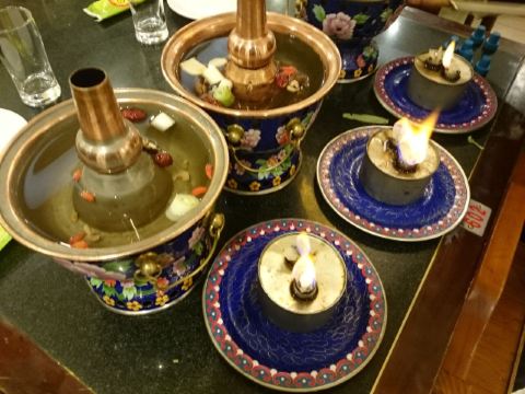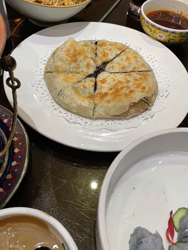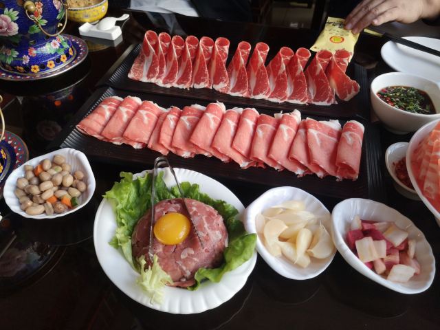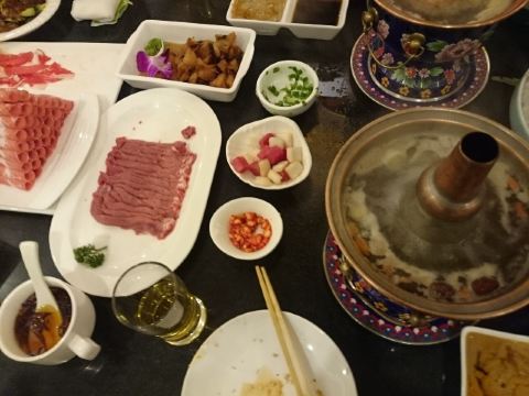 日坛涮肉位于使馆区,在一个庭院里,装饰风格很有帝王范儿,明清式的桌椅,景泰蓝的锅,还可以在院子里吃露天火锅,感觉很不错。这里采用的是一人一锅的方式,地道的老北京涮羊肉,羊肉和奶香肥牛原料新鲜,切的摆的都很漂亮,日坛烧饼非常赞,一定要点。