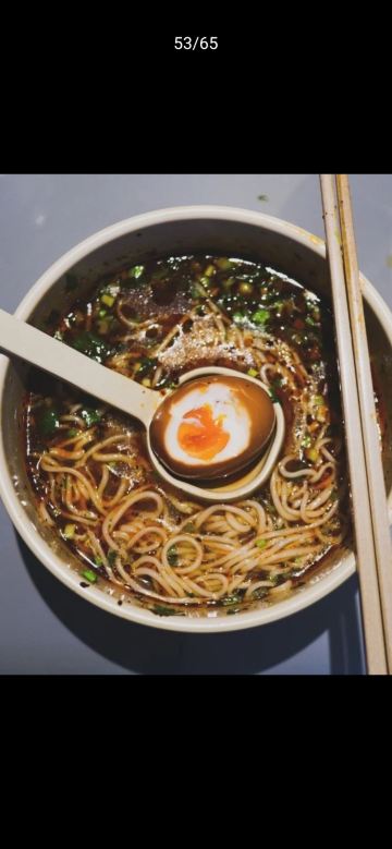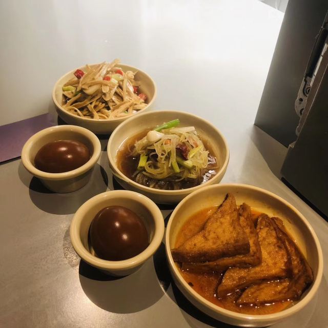 23坐面馆就在三里屯,是现代网红拔草之地。在疫情期间还是要等位,出示健康宝,测温,登记,取号,比较快,因为大家吃面速度都快。扫二维码点餐,很安全。桌间是隔板式,正和现在的疫情防控,当然也可以去掉隔板。溏心蛋是冷藏的,冰冰凉凉。卤豆腐很入味,面是可以选择粗细和辣度的,很有趣。这里比较适合一个人吃。