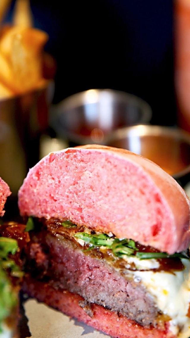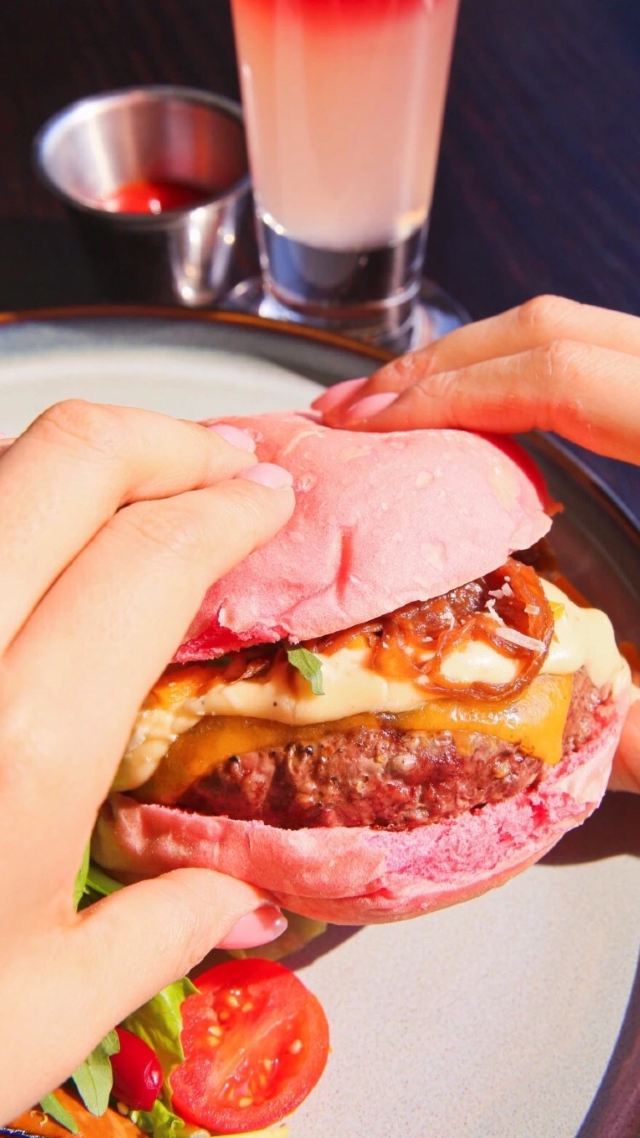 addis777一直以荷尔蒙系汉堡作为主打的蓝蛙,这次新品竟然出了一款萌萌哒的珊瑚粉汉堡!颜色少女心十足,不光能吃还能拍,而且珊瑚粉色还是2019年的流行色呢~ 【珊瑚粉汉堡】里的汉堡坯是特制的珊瑚粉色汉堡坯,是将新鲜的红心火龙果原汁加入到面团里,手工揉制精心烘焙而成,比以往的汉堡坯更松软些。【芝士狠浓牛肉汉堡】全是天然芝士,口感香浓是合成芝士不能比的。第一层是软化的车达芝士,再铺上马苏里拉芝士和帕玛森芝士的融合酱汁,最后撒上略带辣味儿的青柠车达芝士块儿,解腻又提香。吃上去芝士的层次丰富,再加上牛肉饼的肉香,一大口咬下去炒鸡满足。【烟熏三文鱼西柚香橙沙拉】带着淡淡的果香,搭配熏过的三文鱼,咸淡适中。新鲜的西柚、香橙、牛油果和冰草沙拉,光看颜色就要吞口水啦~