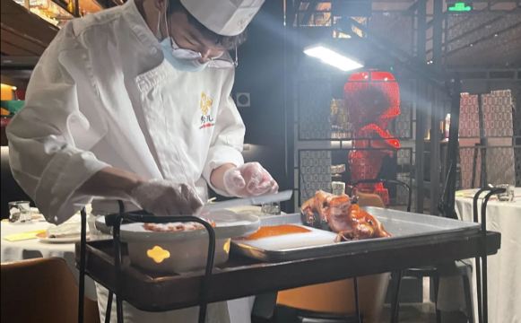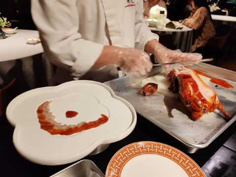 北京美食探索之秀儿四九城 快逛完颐和园的时候老婆说想吃烤鸭,搜到了位于五道口的这家秀儿四九城,从颐和园新建宫门打车十几分钟就到。 餐厅的装修风格是偏商务风,有包厢也有大厅座位,我们坐的大厅位置就可以看到烤鸭炉,烤鸭也都是师傅现烤现片的,所以稍微等了20来分钟。在等烤鸭的过程中先喝了两碗非常美味的鸭汤,老婆的评价是比大Dong的好喝。 整体来说是非常满意的一次用餐,店里服务员的服务也很到位,基本上有求必应。 来到北京自然不得不吃烤鸭,这家餐厅真的是挺不错的选择。