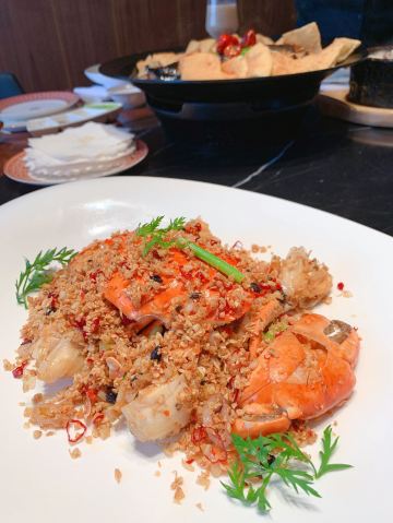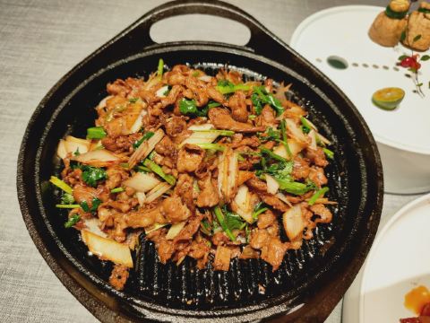 李青娴Starry「酥香烤鸭」 一鸭三吃 🔸把传统的一口酥鸭皮,变成了鱼子酱鸭皮小方,中西食材完美合璧 🔸鸭肉配传统荷叶饼或芝麻小烧饼,鸭饼细节周到,每一张鸭饼之间都有垫纸,让卷鸭的过程优雅从容不失风度 🔸鸭松做馅,藏入蛋挞中,蛋挞传统的甜味里有包裹了一层咸味,好吃有趣 「中式惠灵顿牛排」 满满的西餐仪式感,精致的摆盘,令人赏心悦目的一道大菜 中式的牛肉的特点是全熟,老少咸宜,非常适合家庭聚餐和多人宴请 「有机鱼头配油饼」 老的吃法是配烙饼,后来有见过配油条 配油饼的新吃法又是今天首次见到 油饼还做成笑脸状,感觉吃了一口好心情 「桥底香辣蟹」 用生粉代替蒜蓉,是桥底辣蟹和避风塘炒蟹的最大区别 少了浓浓的蒜香,但是螃蟹里海鲜的本味能发挥的更淋漓尽致