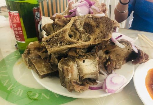 新疆丸子汤,凉拌牛肉,烤羊肉串,大骨头,椒麻鸡小份,油塔子,大份牛筋,大份牛舌,牛排半公斤,骨头汤,特色丸子汤,牛骨头小份