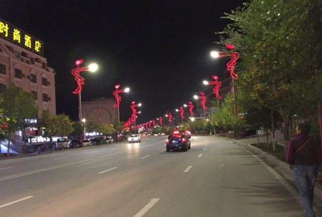 乌鲁木齐出发即使赶了一天的路,到了晚上9点多依旧离喀纳斯还有200多公里,当晚就在北屯市落脚了,北屯市夜晚灯光很美,路灯也做成中国结、火炬的造型。晚饭选在新疆丸子汤,大盘牛骨头,大碗的丸子汤里料特别足,大片大片的牛肉,牛肉丸子、凉粉、冻豆腐、菠菜……再把丸子汤的绝配“油塔子”(图六)泡在丸子汤里,吸满了汤,软软的,入口即化,超好吃😋还要了椒麻鸡和酸辣面筋,不说了,又流口水了[允悲][/cp]