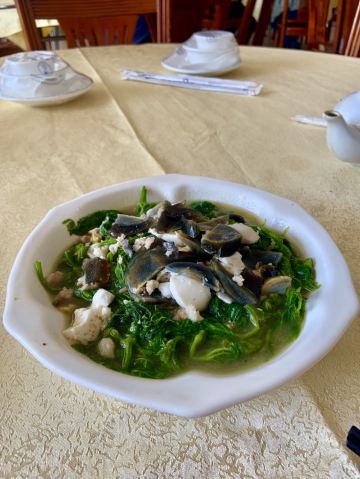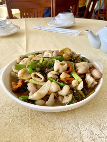 [薄荷]环境: 周边食市不多,找了好久。 外边环境看着很冷清,但店内用餐的人不少,有包房和大厅位置。 [服务铃]服务: 没有菜牌,担心埋单价格有问题,每点一个菜都问清价钱较好。 店员每桌都推荐「盐焗鸡」,虽然每桌都点,看着卖相没有动心[微笑] 「酿豆腐」中规中矩,还可以。 「酸菜大肠」酸菜味道很淡,大肠也比较韧,少点锅气。