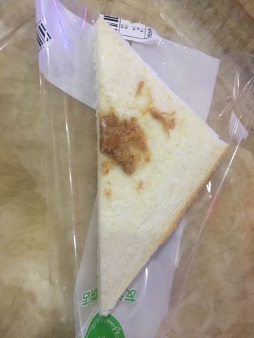 吃友谊面包店的面包长大,第一次打开三文治的皮来看,我的天,不敢相信,是不是师傅心情不好啊?怎么能做出这么难以相信的事情,肉松一点点点,火腿一小片,这是休闲公园对面那家店买的,那天买了两个