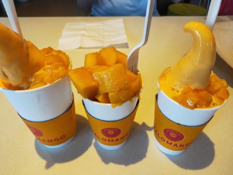 Coco Mama菲律宾长滩岛的甜品必须单开一篇来说: 1、首推coco mama的椰子冰淇淋,实在太好吃了,人见人爱,老少咸宜。这个牌子的椰子冰淇淋只在长滩岛有卖,菲律宾其他地方还没有,因为是椰子粉做的冰淇淋,混合着白椰肉、黑糯米、黄芒果,色彩丰富,又不太甜腻,一个人就能吃掉一个。单品价格才150比索(折合20元人民币),堪称性价比之王。整体色彩搭配十分诱人,强烈推荐不能错过。它就二家分店,D‘mall那个店天天都排队,S3那个店排队人少一些。 2、芒果冰沙60比索,很纯正,就是芒果汁和冰块混合打碎做的,口渴时喝一口太爽了! 3、网红店的芒果冰淇淋,我感觉太甜腻了,只能二三人吃一个,否则甜的受不了,大概200+比索。