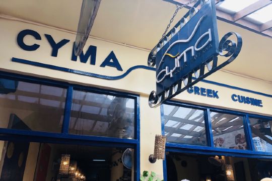 Cyma Greek Taverna Boracay【Boracay go go】 2019.3.7 Dmall里面貌似一家很有名的希腊餐厅,第三天的中午午餐。 【CYMA烧蟹】——梭子蟹意面,1550₱,200人民币左右,确实贵,但是味道真的很棒!梭子蟹很新鲜,肉质细嫩回甘,意面软硬合适,调味是浓厚的蒜香口味,盐味偏淡一些,但我觉得还是合适的。因为橄榄油放得太足,吃到后头稍显油腻了些,挤一些柠檬汁又清爽了许多。 【鸡肉和海鲜Yiouvetsi】——希腊瓦伦西亚海鲜饭&ORZO(大米形状的面食)550₱,简直和第一天的海鲜饭有天壤之别。这里的真好吃,不晓得大米形状的面食是什么,反正看起来就是长粒香米,里面食材多得仿佛每一勺都可以吃到鸡肉和海鲜,而且米饭很入味。 【Paidakia】——烤羊排骨,750₱,有6根,羊排烤得焦香,膻味很轻,而且都是很容易啃的肋排,喜欢吃羊肉,觉得这个也不错。 【红芒果】——甜品,280₱,芒果搭配香草冰淇淋,最有噱头的一道,一边用火焰燃烧店员们还要一边吼了一句什么话,没有听懂,倒是把我吓了一跳。其实味道普普通通,感觉铁板上好像有糖浆,一整颗芒果太太太甜了!香草冰淇淋反而好吃些。 【香蕉冰沙】【芒果冰沙】都是140₱,我喝的香蕉,好喝。 这家应该算是我们耍的几天中吃得最贵的一顿,但确实觉得整体味道都还挺不错的。他家是10%的服务费,有中文菜单。
