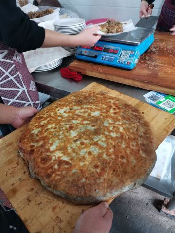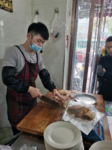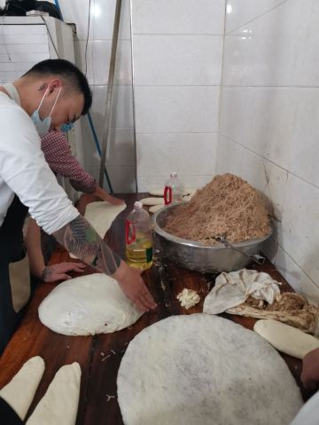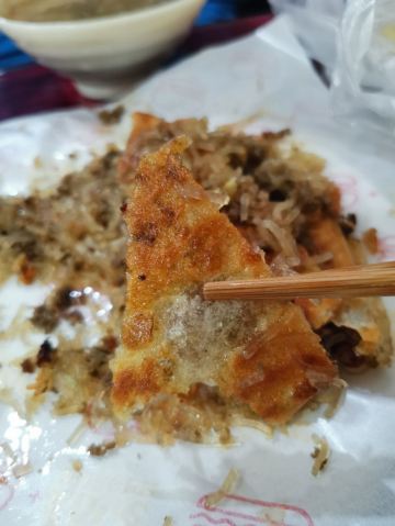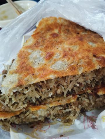 【位置】 导航过去,位置准确,门口有划线收费车位,车位紧张。 离曹操运兵道很近,吃完了正好可以去逛景点。 【环境】 客人多,显得嘈杂,好在店家收拾桌子还是挺及时的。 【服务】 点评上排第一名的牛肉馍店不是他家,偶尔刷到,点开看是收录了十年以上的店,到了门口发现本地人在热情得排队,队伍长年保持30人左右,大约20分钟左右能排到。 买牛肉馍在门口排队,买好以后再买喝的,喝的都在保温桶里装着,盛一下就得。 【食物】 牛肉馍,18一斤,一个饼大概9斤左右,10元妥妥吃饱。 皮薄如纸,又酥又脆。馅是牛肉粉丝,咸香不齁不腻,馅特别多,切开以后只见馅不见皮,刚进店时我以为别人在吃炒粉丝[偷笑] 打包的,可以一元买一张千张,裹着切碎的饼,又方便又好吃。 喝的只有豆浆、八宝粥、麻糊三种,粥挺不错,麻糊类似糊辣汤,尚可。 【评价】 围观了一下店家做饼,这么大的饼,皮能做这么薄,包如此多馅进去,师傅手艺了得。 确实好吃不贵,难怪本地人大排长龙,很多都是拖家带口得来吃。