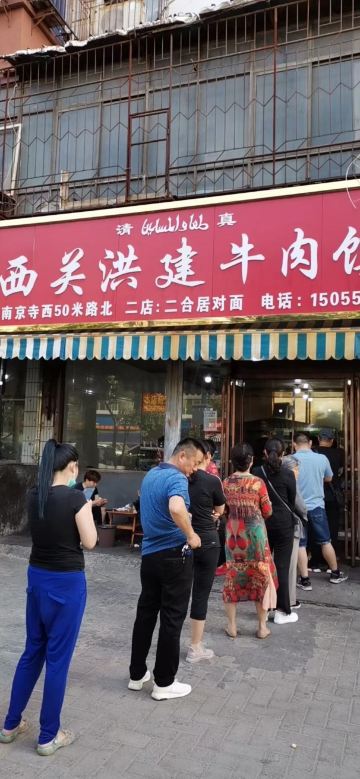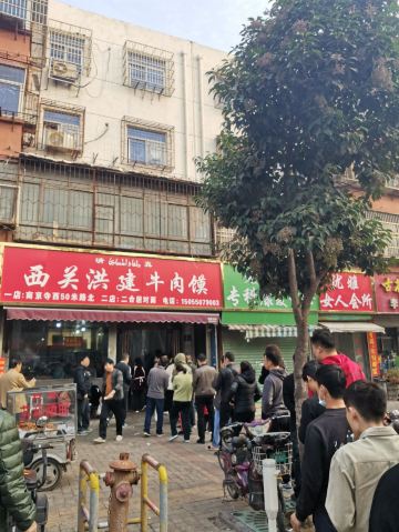 小花猫大笨熊【位置】 导航过去,位置准确,门口有划线收费车位,车位紧张。 离曹操运兵道很近,吃完了正好可以去逛景点。 【环境】 客人多,显得嘈杂,好在店家收拾桌子还是挺及时的。 【服务】 点评上排第一名的牛肉馍店不是他家,偶尔刷到,点开看是收录了十年以上的店,到了门口发现本地人在热情得排队,队伍长年保持30人左右,大约20分钟左右能排到。 买牛肉馍在门口排队,买好以后再买喝的,喝的都在保温桶里装着,盛一下就得。 【食物】 牛肉馍,18一斤,一个饼大概9斤左右,10元妥妥吃饱。 皮薄如纸,又酥又脆。馅是牛肉粉丝,咸香不齁不腻,馅特别多,切开以后只见馅不见皮,刚进店时我以为别人在吃炒粉丝[偷笑] 打包的,可以一元买一张千张,裹着切碎的饼,又方便又好吃。 喝的只有豆浆、八宝粥、麻糊三种,粥挺不错,麻糊类似糊辣汤,尚可。 【评价】 围观了一下店家做饼,这么大的饼,皮能做这么薄,包如此多馅进去,师傅手艺了得。 确实好吃不贵,难怪本地人大排长龙,很多都是拖家带口得来吃。