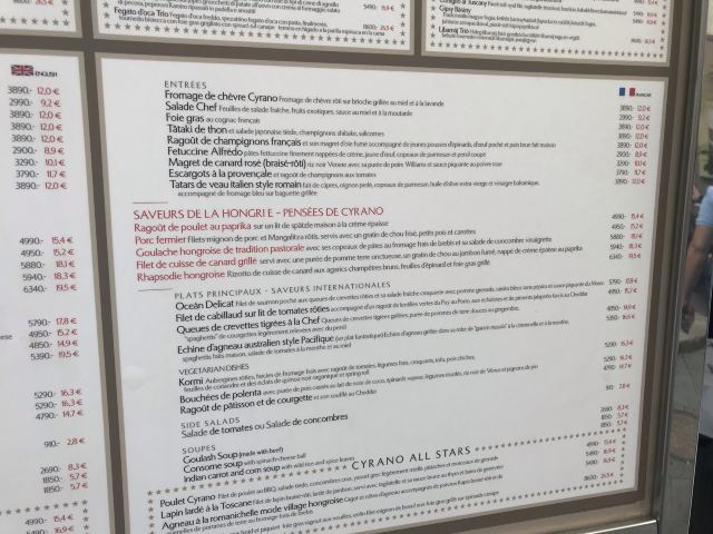 Cyrano餐厅位于布达佩斯的市中心,紧邻瓦兹街。2018年被授予米其林一副刀叉的称号,餐厅的红椒鸡和红烩牛肉都是其招牌,也是布达佩斯的特色菜,菜品味道可圈可点,价格对于一个米其林级别的餐厅来说还是很亲民的。