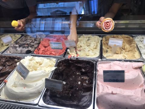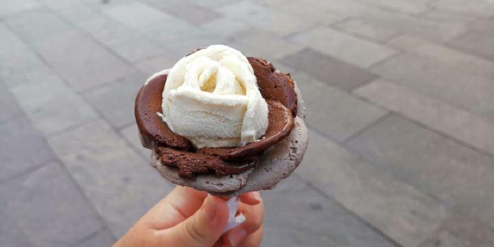 它位于史蒂芬大教堂旁边,星巴克对面,是布达佩斯非常有名气的玫瑰花冰淇淋店。意式冰淇淋的做法加上各种颜色的玫瑰花的造型,即可口又好看,有各种水果和巧克力等口味。价格也相当划算,三种口味的冰淇淋售价人民币20元左右。