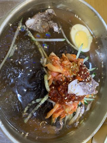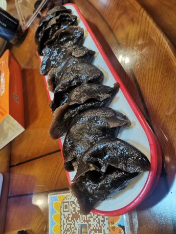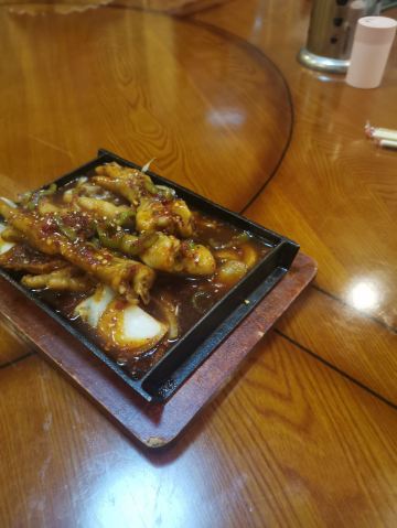 【位置】从金水鹤酒店打车过去8块钱。周边蛮多好吃的。 【服务】老板和收银台旁卖鱼干的姐姐态度都很好,老板最后还亲自开车+叫了朋友开车,把我们送回酒店,没收车费。 【环境】一楼是大堂,二楼有包厢,包厢可以坐十一二个人一桌,就是空调没有提前开,有点冷。 【菜品】都好吃!!! -土豆饺:就是黑色的饺子,第一次吃,爱了爱了!这皮有一股特别的韧劲儿,咬起来口感很舒服。 -凉面:冬天也要带冰碴子才好吃!特别是啃了辣鸡爪,来一口凉面压一压,太爽了! -米酒:才1度,当饮料喝。 不过我还是喜欢蓝莓汁。 -小黄牛肉蘸酱:虽然是招牌,却没什么印象。 -鱼干:这个是一楼店内小摊上的,不在点菜里,到也好吃!