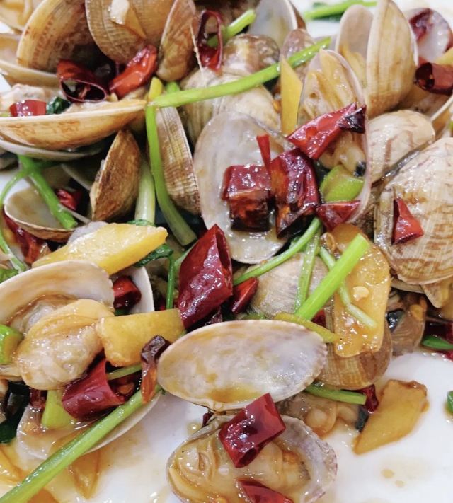 辣炒花蛤,白灼海螺,酱焖海杂鱼,八爪鱼炖肉,韭菜八爪鱼,清蒸生蚝,黄瓜拌海蜇丝,清炒蒜蓉小白菜,牧海炒花蛤,葱姜称子
