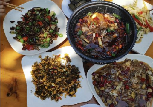 看好住宿 顺便看看晚餐 看距离不远 准备过来试试 结果非常完美 【口味】地道家常味 色香味俱全 比较推荐(竹荪蛋 )滑滑嫩嫩的 (竹胎儿 )嫩脆。(三鲜竹荪汤)汤鲜味美 【环境】全屋木质结构 小清新 干净整洁 【服务】老板和服务员阿姨非常热情健谈 还主动给我们讲见旅游攻略 整体来说 是非常推荐前往的一家店