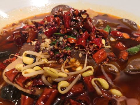 店里的水煮鱼是比较出名的,点的客人也是挺多的。水煮鱼做的是麻鲜香,并不是特别辣,锅里飘着辣椒、麻椒,清亮亮的油,看着就食欲大增,妥妥的下饭菜。