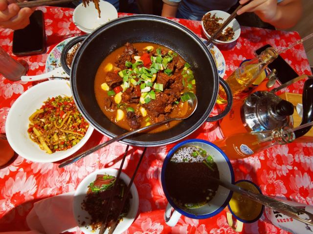 位置在炊烟时代小炒黄牛肉的旁边,可能是疫情原因,人不是很多。点了麻油猪血汤,啤酒鸭,猪油炒饭,酸萝卜炒牛百叶,汽水每人免费一瓶,体会一把八十年代的味道。整体来说,菜口味比较清淡,不是很符合湘菜的特点,不过外地人可能更适合些。