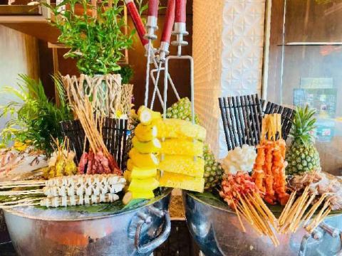 黑蒜烤生蚝,佛跳墙,香煎鹅肝,榴莲芝士蛋糕,杨枝甘露,烤羊排,海鲜,烤牛排,水果,烤生蚝,烤扇贝,孜然寸骨,小龙虾