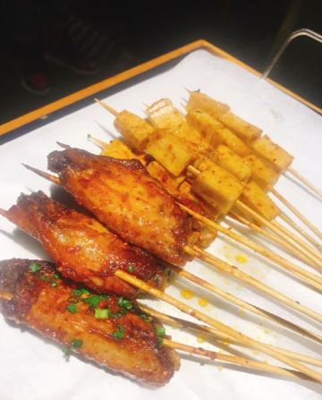 客串拌粉,功夫牛肉筋,黄金掌中宝,黄金牛油,烤鸡翅,烤茄子,烤排骨,功夫牛肉,烤五花肉,烤生蚝,黑蒜烤生蚝,串烤脆骨,鱿鱼芥末,香格里拉牛肉,串特色牛黄金,客串出品精品牛油,烤牛筋,卤粉,千叶豆腐