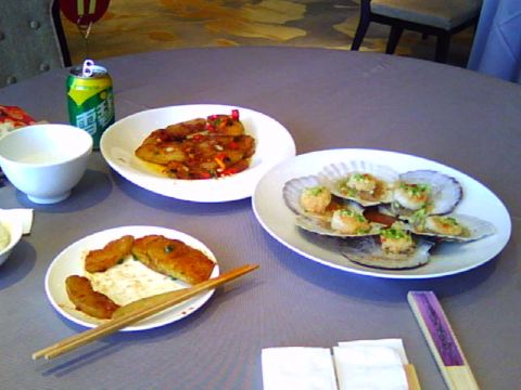 豆瓣五花肉,,好吃,,菊花菌汤,,香干炒肉,,黑松露水晶粉丝,,椒盐大明虾,,蒜蓉扇贝,,