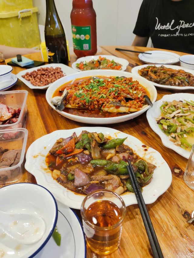 剁椒鱼头,辣椒炒肉,长豆角炒茄,银耳莲子羹,田鸡,姜片鸡,猪脚,臭豆腐,绿豆沙,卜辣椒炒肉,神仙牛肉,渔头,平淡的很,粉蒸肉,猪手,蕨菜,砂锅腊肉花生苗,炒香干,红薯粉,白菜苔,干锅花菜,玉米排骨汤,馄饨,泡菜,芽白,湘菜