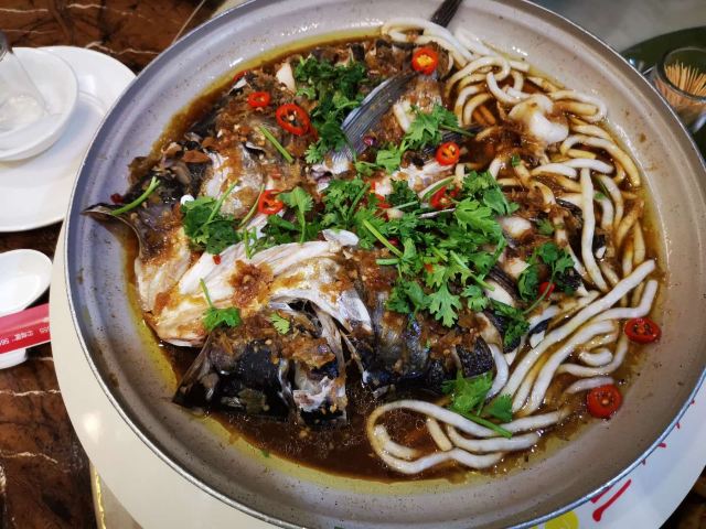 在长沙,鱼头是一道不能错过的美食,这里的鱼头更是有名。餐厅在当地有些许年头了,酒楼式的装修风格,宽敞大气,随处可见龙的元素。现杀现蒸的鱼头,分量十足,辣中带鲜,让人吃过一次就忘不了。另外,猪脚、绿豆沙也做得非常有特色。