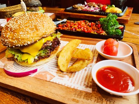 【环境】 在雨花亭凯德广场一楼韶山路的西南角,店名就取得很有意思,到店后感觉整个氛围都很赞,美式工业风格,灯光、装修、摆设都很有味道,细节的装置与艺术的氛围并存。各式各样的啤酒整整齐齐的摆在大玻璃柜里,酒馆果然很专业!之所以叫做巴士可能也是一种城市生活状态的缩影。 【口味】 「泰椒牛肉粒」牛肉肉质细嫩,有弹性有嚼劲,泰椒的分量也拿捏得刚刚好,辣劲恰到好处,口感很不错。 「夏威夷汉堡」「美式经典汉堡」面包面料好,蓬松饱满,里面的料也很足,每款都有自己的特色,味道不一样,但是都很好吃! 「香煎法式羊排」「铁板罗勒鸡排」羊肉、鸡肉都很新鲜,火侯掌握得也很好,很喜欢吃配菜里的土豆,外焦里嫩! 【服务】 酒馆的服务还是很到位的,服务员热情礼貌,上菜速度快,在这么洋气上档次的地方,我能想象到世界杯时通宵达旦热闹非凡的场景,以后聚会休闲又有一个好去处了!必须推荐!