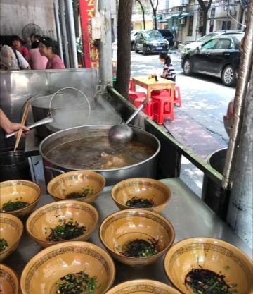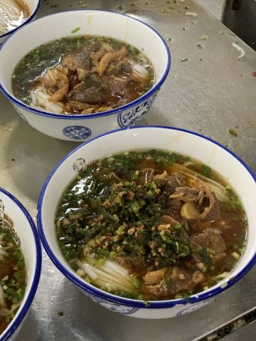 董坤这家算是国庆期间排队没那么严重一家网红店 也许这种粉店出餐比较快的原因吧 不过当天还是有顾客因为排队吵了起来 交通: 离五一广场还是有一定距离 公共交通还是比较方便 门口北侧就是公交站点-公交新村,多路公交直达 不知道是先有粉店还是先有公交站 环境服务: 空间还是蛮大的,服务员收餐的频率也算比较及时 早上不太需要等位 「牛肉雪里蕻粉」 饭还没吃,先学了一个生字-蕻(hóng) 也是第一次知道原来雪里蕻就是雪菜 还以为可以尝试一个新品种 牛肉炖的很烂很入味 相对来说,粉煮的好像有一点点过了 没有特别惊艳,不过还是可以来尝试一下
