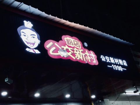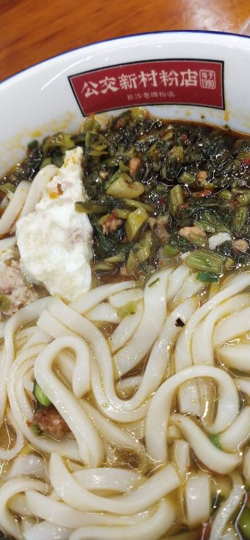 筱风姿长沙必吃榜粉店|打卡公交新村粉店 看来长沙真的是一个特别喜欢嗦粉的城市,所以长沙的必吃榜上才会有那么多家粉店,本来是打算每一家都去一下的,奈何我实在太懒了,别人每天早上出门,我每天下午或者傍晚才出门,导致最后只是打卡了一两家粉店,这家公交新村粉店算是我去过的最大的一家粉店了。 当天晚饭的第二顿粉就去了这里—公交新村粉店 一家非常接地气,很当地的粉店,看来都是老客户,邻里邻居的或者是像我这种“游客吃货” 据说长沙人不完早晚都喜欢嗦粉,看来是真的,晚上8,9点到的,人气依旧十足。 •店铺位置:曙光中路475号 •嗦粉交通:公交新村站,可坐143号公交车 •营业时间:5:00-次日02:00 •人均:¥10.00 •环境:墙上的人物还是非常萌的,也非常的显眼,很特别;粉店很大,桌椅很大很长,看着还蛮干净的,桌子边有垃圾桶。 因为之前吃了一碗面,隔了20分钟又嗦粉,所以点了一份素菜的粉--雪里蕻粉 还真的应该试试他们这里的料,看着色香味俱全哦,卤料很足的样子。 •雪里蕻粉 ¥9.00 排队点单,然后拿粉,总的也就几分钟,阿姨们烧粉真的超级快啊;再自己加料,找位子坐下,桌上有醋、辣椒等作料可以自行调料。 雪里就是雪菜炒肉沫,可以额,酸酸咸咸的好吃,一口汤也是极棒的;这里的粉还算比较有劲道,大概是雪菜比较下饭,食欲有变好哦。 除了自己选择的码子,还有一些自选配料可以自助加,有雪菜、酸豆角、榨菜、辣椒、蒜泥、葱等等,还是非常的人性化哦。 粉的颜值上也不错,阿姨撩粉的技术很厉害,一筷子粉根根清晰整齐,碗上还有“公交新村粉店”的logo,白色的粉绿色的雪菜,很好看。 总的还是比较推荐的